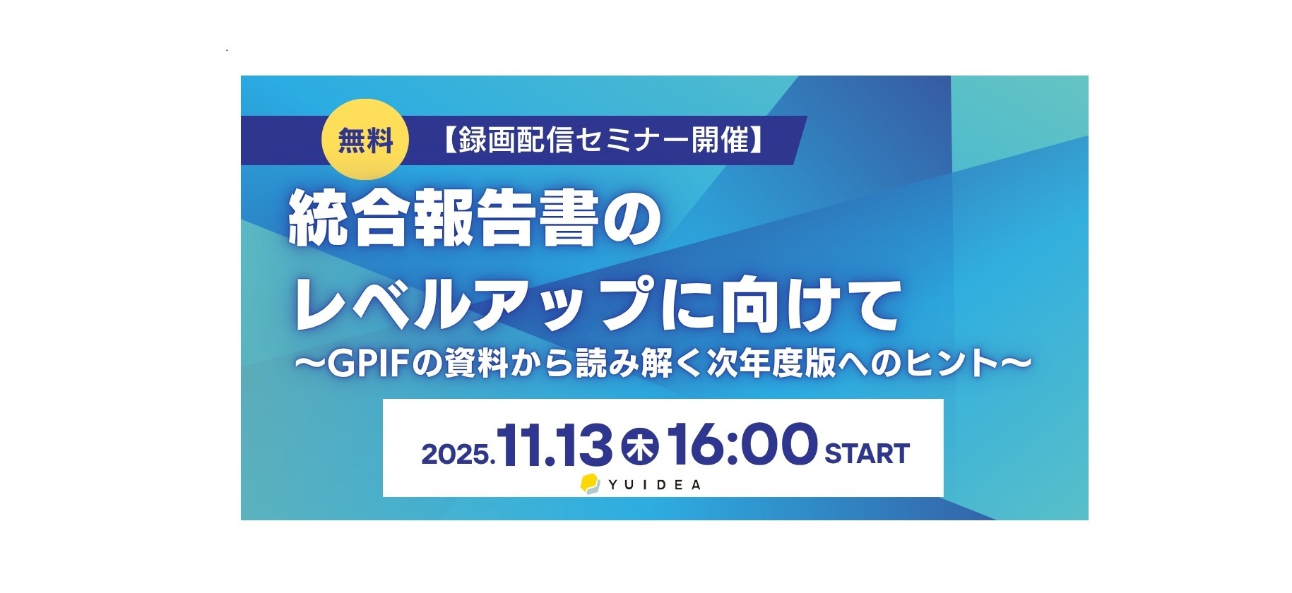 無料 【11/13(木) 録画配信セミナー開催】「統合報告書のレベルアップに向けて~GPIFの資料から読み解く次年度版へのヒント~」
